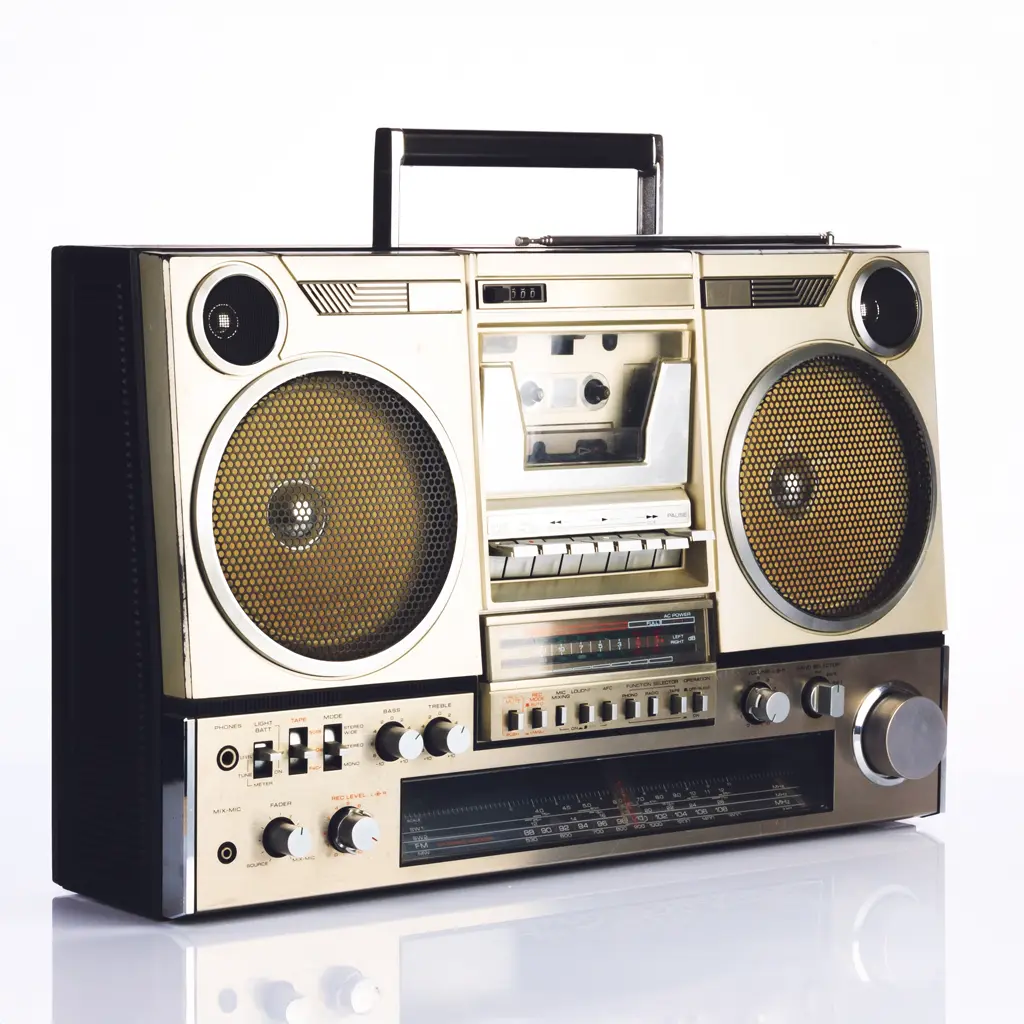 Make the boombox out of translucent red liquid jelly. It is melting and slightly deformed on a hot summer day in the city. In the background is graffiti that says “melted”.